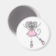 A stick figure mouse ballerina in a pink dress on a customizable magnet.