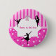 Dancing Ballerina silhouette Birthday party buttons, Ballerina silhouette on a bright pink and fuchsia background with white polka dots and pink hearts. On top a beautiful ballerina shoe illustration.