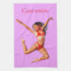Black-haired red bikini-wearing girl leaps high dancing to customize, personalize by changing to your name