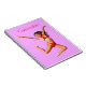 Black-haired red bikini-wearing girl leaps high dancing to customize, personalize by changing to your name