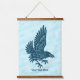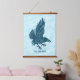 A simple, blue silhouette-like image of a lively raven (Corvus corax) done in Norse-Celtic style, superimposed on a snowy background image. Customize by adding your own text.