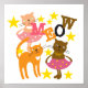 Dancing Cats T-shirts, hoodies, mugs, mousepads, cards, stickers, keychains, tote bags, magnets, buttons, pillows, clocks, and more with three cats, two in tutus, yellow stars, and text that reads MEOW!