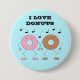 A chocolate doughnut and a strawberry doughnut are having a delightful time dancing. We should all dance more. You can alter the background colour and make various alterations to the letters to this fun button. Customizable. Original work; © Sharon Lee Hudson. All rights reserved.