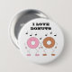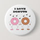 A chocolate doughnut and a strawberry doughnut are having a delightful time dancing. We should all dance more. You can alter the background colour and make various alterations to the letters to this fun button. Customizable. Original work; © Sharon Lee Hudson. All rights reserved.