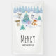 A banner with a whimsical Christmas scene. Happy forest animals dancing around a decorated Christmas tree.