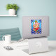 La colle n'est pas très collante. Le point positif est que le collant s'enlève facilement. Le point négatif est que les côtés "frisent" un peu, je l'ai collé sur mon ordinateur et quand je le met et l'enlève de mon sac, ça abime un peu les rebords. Mais ça tient quand même depuis quelques semaines sans problème, c'est juste les côtés qui sont un peu abimés. Je suis très satisfaite de la qualité de l'impression. Les couleurs sont fantastiques et tiennent bien le coup.