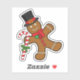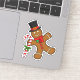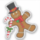 An illustration of a happy dancing gingerbread man with a top hat and a candy cane. During Christmas celebrations, gingerbread and candy cane are always present. Baking a gingerbread is a way for bonding with the family and making children happy.