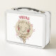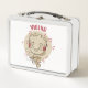 This is a standard metal lunchbox that appears to work just fine. We designed this box ourselves with an uploaded photo and custom text on the front and back. It looks absolutely beautiful except the front of the lunchbox is not centered like it shows in the photo. The print borders don't align with the inset flat part of the box where the preview photo online showed it perfectly centered in there. The back looks nice and centered though.