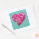 Dancing Heart Pink Hydrangea Flower on Teal Blue Square Sticker