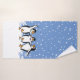 Dancing Penguins Design Bath Towel Set with customizable background colour and text.