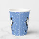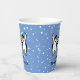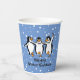 Penguins Dancing in Snow Design Paper Cup with customizable background colour and text.