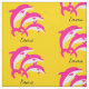 Make pjs, bedroom decor, bags, and so much more with this fabric that features dancing pink dolphins on a golden background! Customize with a special message or name.