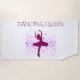 "DANCING QUEEN" beach towel with dancer in white & purple.