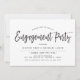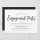 A unique Engagement Party invitation featuring dancing script style lettering followed by your unique details in black and white.