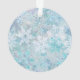 Snowflakes acrylic Christmas ornament features a digital graphic of snowflakes that look as if their dancing in a storm, coloured in mostly shades of blue and white.