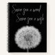 Elegant motivational notebook featuring an original black and white macro photograph of a beautiful dandelion with an inspirational quote in an elegant calligraphy white font that reads "Some see a weed, Some see a wish"