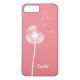 This trendy and chic floral iPhone 7 Plus Case is accented with a pretty white dandelion and floating seeds on a coral background, and can easily be personalized with your name or monogram.