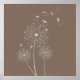 White silhouettes of tiny birds flying away from three giant dandelions with dandelion seeds clutched in their feet.