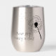 Dandelion Wishes Design Thermal Wine Tumbler with customizable text on both sides.