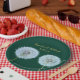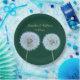This paper plate is ready to be personalized with your own text. It features photos of dandelion flowers or dandelion clocks against a dark green background with your message in spring green letting in a combination of script and print characters.