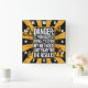 This bold, humourous warning sign features "DANGER:" on a central black panel, surrounded by a distressed yellow and black radial striped background. The assertive text reads: "TO AVOID ARGUMENT / DO NOT QUESTION / MY METHODS / JUST ENJOY THE / THE RESULTS". Warning triangles with skulls, question marks, and exclamation points reinforce its edgy, no-nonsense message.