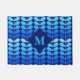Danish Leaves With Monogram, Navy and Cobalt Blue Doormat