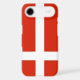The national flag of Denmark, Dannebrog, is red with a white Scandinavian cross that extends to the edges of the flag.