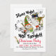 Drôle invitation de fête de Noël avec des gnomes dansants. L'invitation de Noël utilise l'expression "Nuit silencieuse pas Tonite"