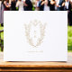 This floral gold and white boho classy crest wedding guest book from the Daphne Collection is perfect for a traditional wedding.