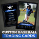 Ce modèle de carte de baseball élégant et moderne est parfait pour présenter les stats et les réalisations de votre joueur préféré. Avec ses couleurs noir et bleu, il se démarque de la foule. Personnalisez-le avec le nom, l'image et les statistiques de votre joueur pour créer une carte unique et mémorable. Cela fait un grand cadeau pour n'importe quel fan ou joueur de baseball.