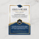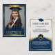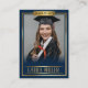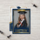 Célébrez votre diplômé en style avec cette élégante carte bleue et or! Entièrement modifiable, cette conservation est dotée d’un design sophistiqué, d’un texte personnalisable et d’un emplacement pour la photo du diplômé. Parfait pour les annonces, les faveurs de fête ou les cadeaux de fin d'études uniques, cette carte design fait de votre diplômé la star du moment !
