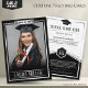 Célébrez votre diplômé en style avec cette élégante carte de trading noir et argent! Entièrement modifiable, cette conservation est dotée d’un design sophistiqué, d’un texte personnalisable et d’un emplacement pour la photo du diplômé. Parfait pour les annonces, les faveurs de fête ou les cadeaux de fin d'études uniques, cette carte design fait de votre diplômé la star du moment !