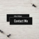 Ce mini carte de visite noir dit "contactez-moi" sur le devant du carte de visite. Le verso contient quatre lignes de texte d'affichage pour votre nom et vos coordonnées, telles que votre numéro de téléphone, votre adresse e-mail et/ou votre adresse de médias sociaux. Tout le texte peut être modifié ou supprimé.