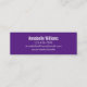 Ce mini carte de visite royal violet dit "contactez-moi" sur le devant du carte de visite. L'arrière contient quatre lignes de texte noir pour votre nom et vos coordonnées, telles que votre numéro de téléphone, votre adresse e-mail et/ou votre adresse de médias sociaux. Tout le texte peut être modifié ou supprimé.
