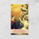 Le design avant présente une reproduction du tableau "L'Annonciation à la Vierge" de l'artiste Bartolome' Esteban Murillo des années 1600. Les mots "L'Annonciation, Le Premier Mystère Joyeux" sont affichés en bas. Le verso contient les paroles à la prière, L'Angelus.