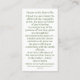 Le design avant présente le portrait officiel de Saint Padre Pio par le photographe After Elia Stelluto. (Fin des années 1950 ou début des années 60) Reverse présente la prière officielle à St. Padre Pio avec la possibilité de customiser en ajoutant un nom ou un nom de famille en bas. Le texte est dans un vert de forêt.
