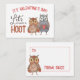 Améliorez la Saint-Valentin de votre enfant avec notre paquet de 25 cartes de Saint-Valentin pour la classe ! Chaque carte de 3,5" x 2,5" présente de charmantes chouettes à l'aquarelle tenant un cœur rouge, disant "amusons-nous". Ces cartes de poche sont non seulement adorables, mais également personnalisables avec le nom de votre enfant. Le dos offre un espace pour écrire les noms des camarades de classe, ajoutant une touche personnelle. Profitez d'un prix abordable en optant pour le paquet, parfait pour les mamans qui cherchent une Saint-Valentin sans stress mais impressionnante. Perforez un trou et attachez avec un ruban pour fixer facilement ces cartes aux sacs de friandises, créant des friandises uniques pour la classe et l'enseignant de votre enfant.