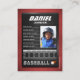 PRO Baseball Trading Card with Stats<<>> C'est le cadeau parfait pour célébrer les réalisations d'un joueur de baseball, une carte de collection personnalisée pour un fan passionné de baseball, ou offrir ces cartes à chaque joueur d'équipe et entraîneur pour être éternellement chéri en mémoire. Ce design unique de carte de sport est apprécié par tous les joueurs, jeunes et vieux. <<>> Customisez et imprimez-le pour tenir et partager! Ces cartes de qualité vous permettront de présenter vos athlètes à leur meilleur !