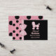 Carte mignonne de mise en réseau de maman faite à un arrière-plan noir, du côté droit, et un rose avec le pois noir, sur l'aile gauche et le dos. Des graphiques d'une verticale fonctionnante de ruban rose et blanc de guingan entre les deux milieux est décorés d'un arc de guingan. Un caniche rose semblant pelucheux adorable décore le côté en haut à droite de la carte, avec le texte rose fait sur commande sous lui. Personnalisez cette carte d'amusement comme grande manière de rester en contact avec d'autres mamans pour s'charger des parties, des dates de jeu, et de la séance de bébé.
