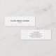 Élégant Design moderne Deux imprimés latéraux Mini Cartes de visite chic 1" x 3" avec coordonnées sur le côté arrière, conçus avec des points noirs chic sur un arrière - plan blanc, entièrement personnalisables et configurés comme modèle pour votre personnalisation facile. La couleur arrière - plan peut être changée en n'importe quelle autre.