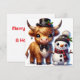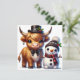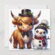 Dapper Highland Cow with Snowman Friend Holiday Card
