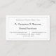 This plain business card design features a professional’s name, a medical facility name, a job title, and contact information that can be customized. It also has a single-line border. Business cards like these might be used by a professional such as a family physician, a medical doctor, or a family doctor.