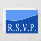 This dapper, simple RSVP card design features the message "R.S.V.P." on the front. It also features a customizable RSVP form on the back. RSVP cards like this might be used to find out who will be attending a birthday party, a retirement party, a graduation party, a wedding shower, or some other celebration.