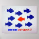 Blue fish swimming one way, one red fish swimming the other, with words: Dare to be different.