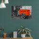 Unusual bike with a message: Dare to be different. (you can change of erase the message). A touch of orange in a black and white décor.