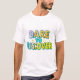 Imagine a crisp white t-shirt with a bold design on the front. The phrase "Dare to Discover" is featured prominently in large, elegant, and slightly cursive lettering, giving it a sense of sophistication and adventure. The letters are outlined in gold, adding a touch of luxury and excitement. Dare to Discover T-Shirt