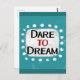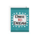 "Dare To Dream" is a cute inspirational or motivational quote with a white accent shape surrounded by white textured whimsical dots.