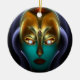 Daria's face is composed of a copper metallic skull and a lower blue organic face that includes a mechanical looking nose, cybernetic eyes and the skull clamping mechanism.