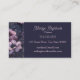 This dark academia style business card features purple flowers and intricate spiderwebs.
