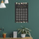Our vintage boho floral wedding seating chart poster features a moody floral arrangement of romantic roses, peony and anemone flowers, greenery, and rustic bohemian feather accents in rich shades of dusty rose, mauve pink, cassis, creamy white, moss green, grey, and gold on a dark grey / black background colour. A dramatic and dreamy colour scheme for your fall or winter wedding. Personalize the beautiful custom monogram, wedding guest, and table number text for your elegant rustic wedding day.